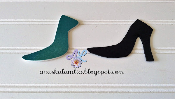 18.- El zapato, por el contrario, le he puesto lo que aquí llaman Pop-dots, en España, como la pieza de antes, se admiten respuestas. Los utilizan en scrapbooking, para realzar las piezas o hacer que queden más altas que el resto del conjunto.