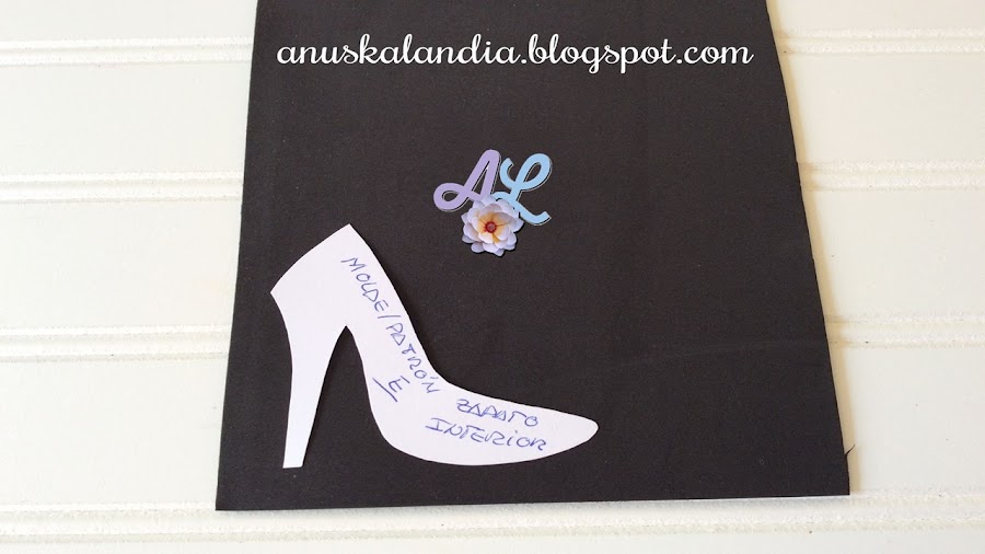 5.- Marca el molde del zapato interior o "E" en goma eva negra y recorta.