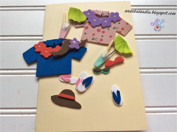 10.- Con las piezas encima de la tarjeta, las colocaremos y pegaremos según nuestro gusto y creatividad.