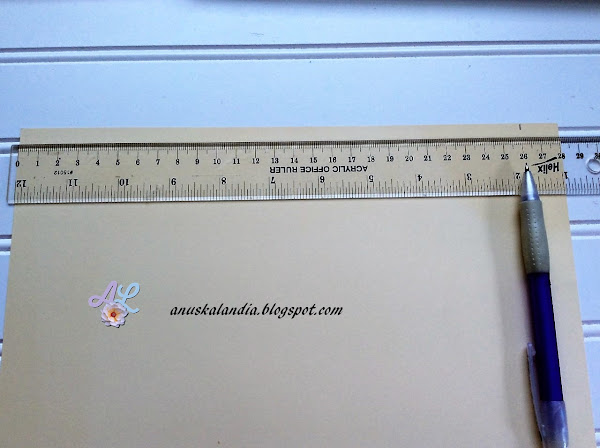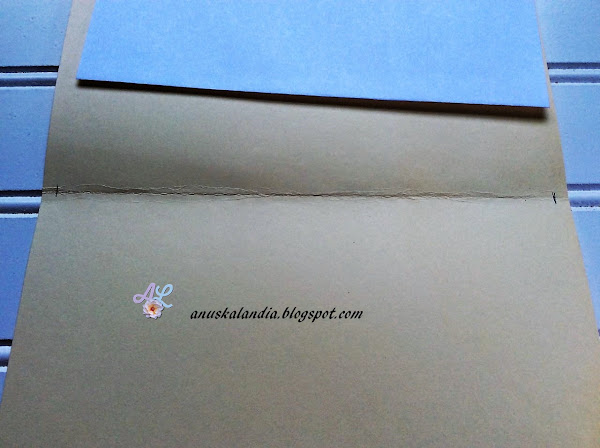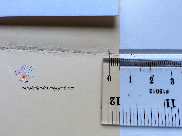 3.- Pasamos al montaje de la tarjeta, parte cartulina papel. Doblamos ambas piezas a la mitad. Cómo la cartulina tiene 1 cm. más, vamos a marcar a 1/2 cm. en ambos lados, para que nos quede completamente ajustado.