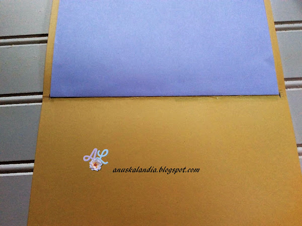 4.- Procederemos a pegar el papel interior a la cartulina. Vamos a utilizar el pegamento doble cara o "typex". Ponemos una tira como se aprecia en la imagen. Superponemos el papel encima de la cartulina. Presionamos. Cerramos la cartulina y hacemos presión por ambos lados para que se pegue. Nos quedará como en la última foto.