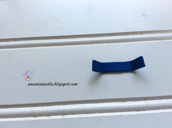 Doblamos por ambos lados la pieza del cuello, como se aprecia en las dos primeras imágenes. Ponemos una gota de pegamento en cada lado, por la parte interior. Pegamos como aparece en la cuarta foto. Gota en la parte posterior del cuello y pegar en el borde de la camisa. Pegamos cuatro flores para formar un collar. Pegamos de igual manera que la flor del sombrero y también le echamos su gota de "Casper"