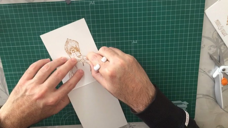 Una vez recortado, doblamos la tarjeta por la parte del cuello, tal y como se ve en la imagen.