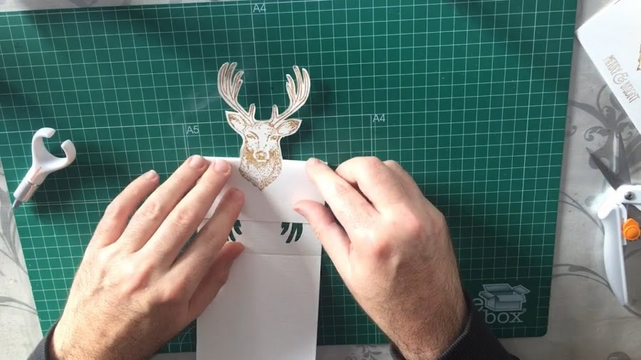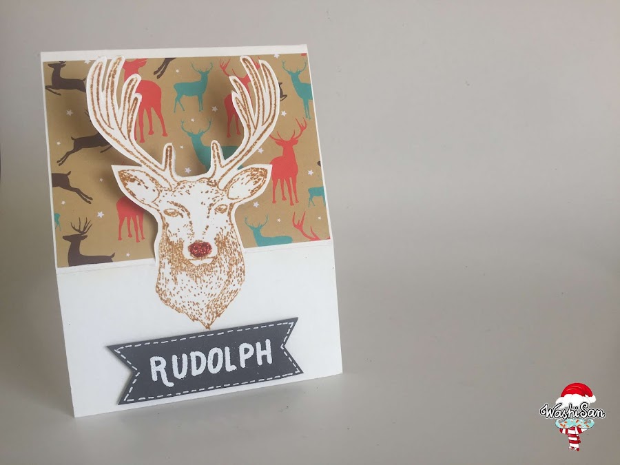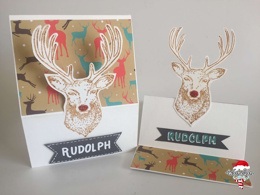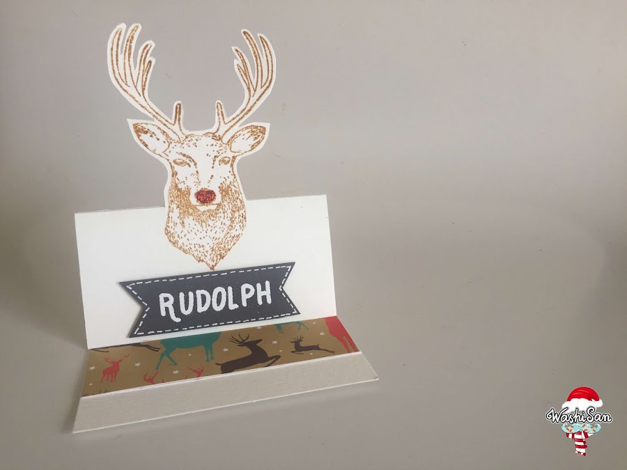 Os traigo una nueva idea para una tarjeta de Navidad, una tarjeta que se transforma y despliega y queda como un atril exponiendo la figura central. En este caso es un ciervo, pero no cualquiera!