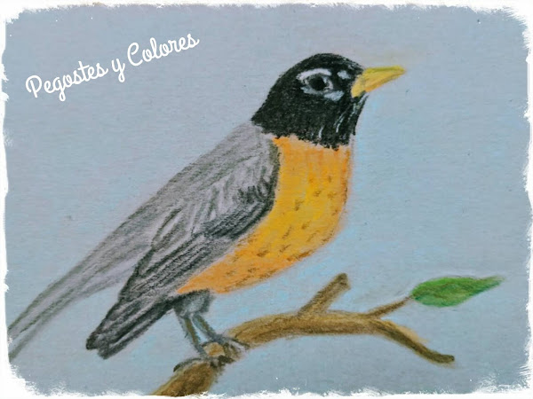 Continuo practicando la técnica con gises pastel, que recientemente retome después de años sin tocar mis estuches. En esta ocasión vuelvo a hacer otro pájaro petirrojo, pero americano. Porque el otro pájaro petirrojo que había hecho es del tipo europeo para una tarjeta para mi papa.
