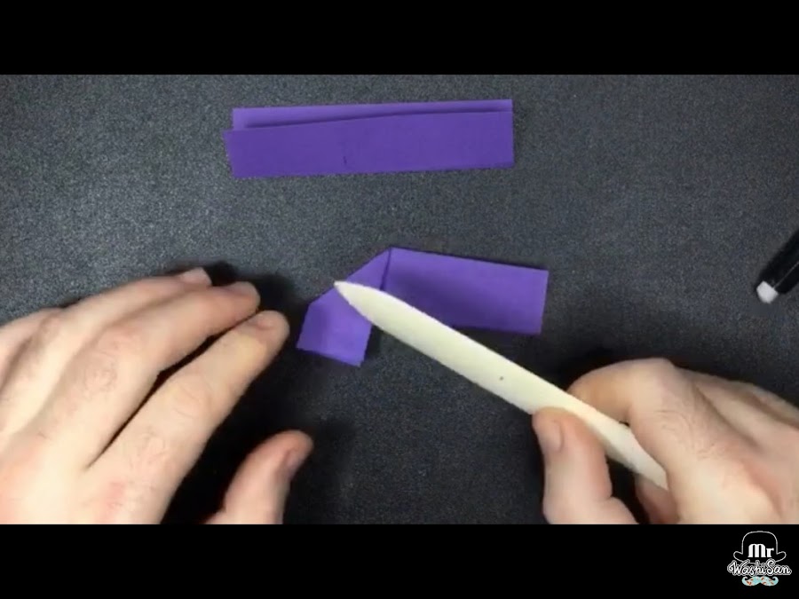 En el video tenéis bien indicado como hay que hacer los dobleces pero a modo de resumen las cartulina de 10 × 5 las doblaremos por la mitad longitudinalmente.