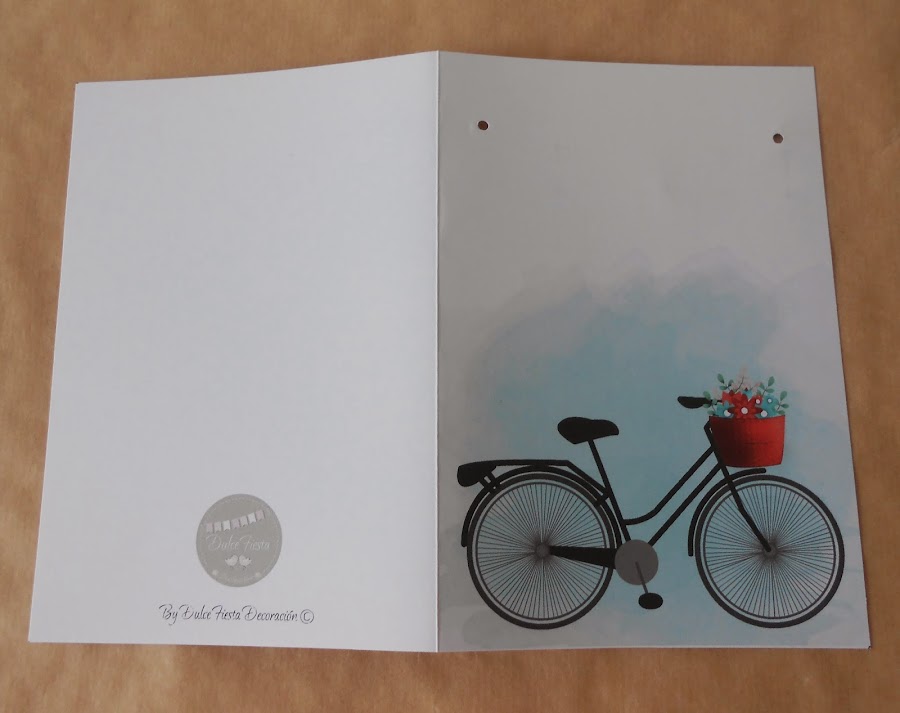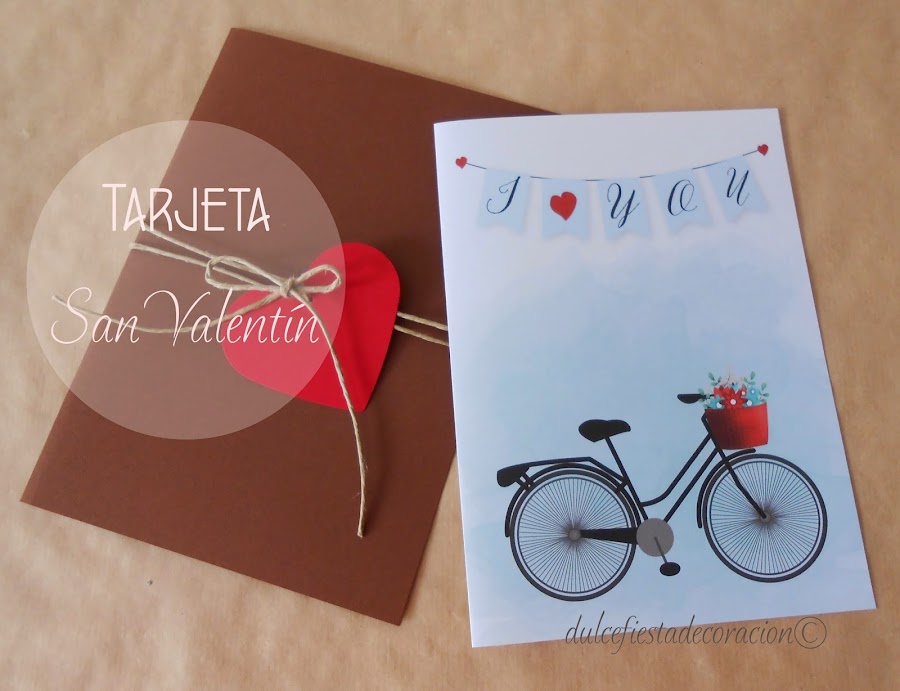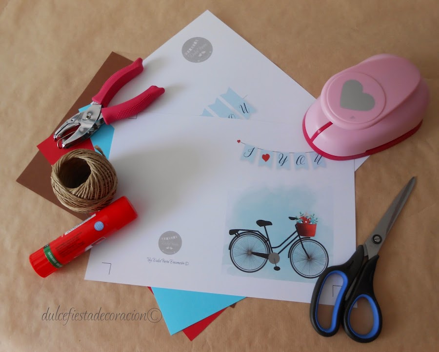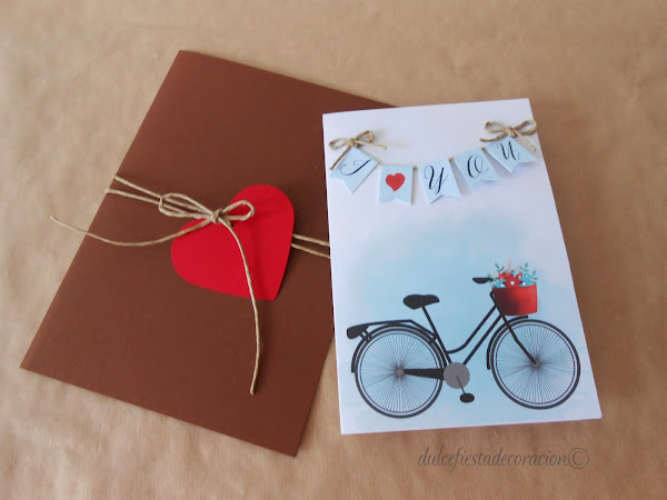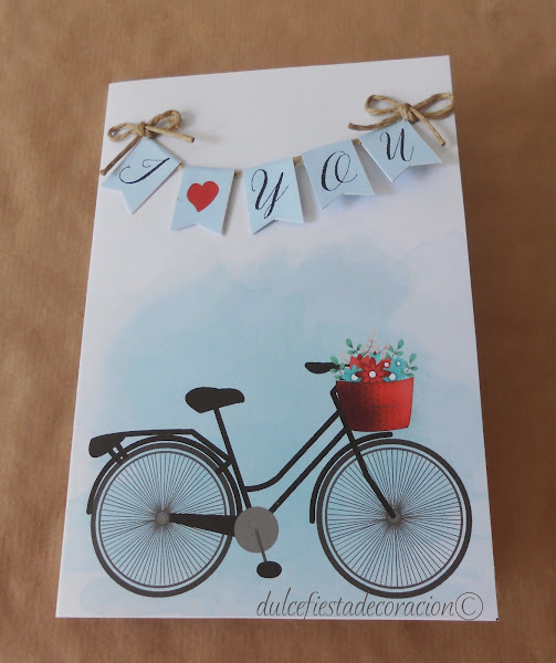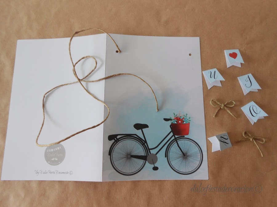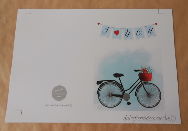 Se trata de una tarjeta imprimible con una ilustración de una bicicleta vintage y una guirnalda con mensajito...Qué hay más romántico que un paseo en bici?