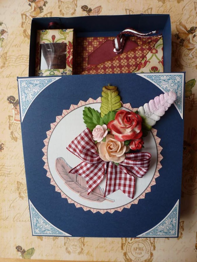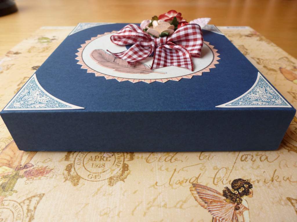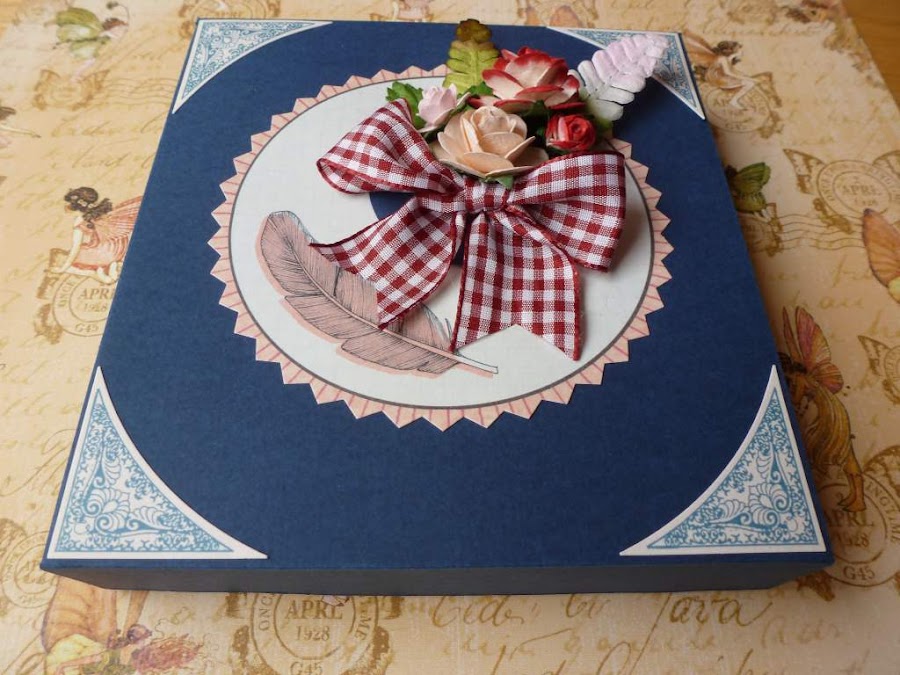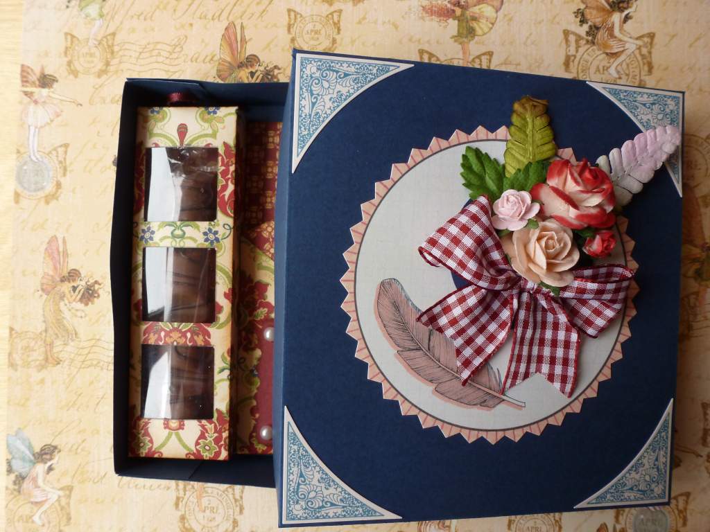 Y para rematar la tarjeta, hice una caja para introducirla, según un sencillísimo tutorial que puso Acorral (Ana Corral) en su blog. Vale para cualquier cosa que hagamos, y el resultado es muy lucido: