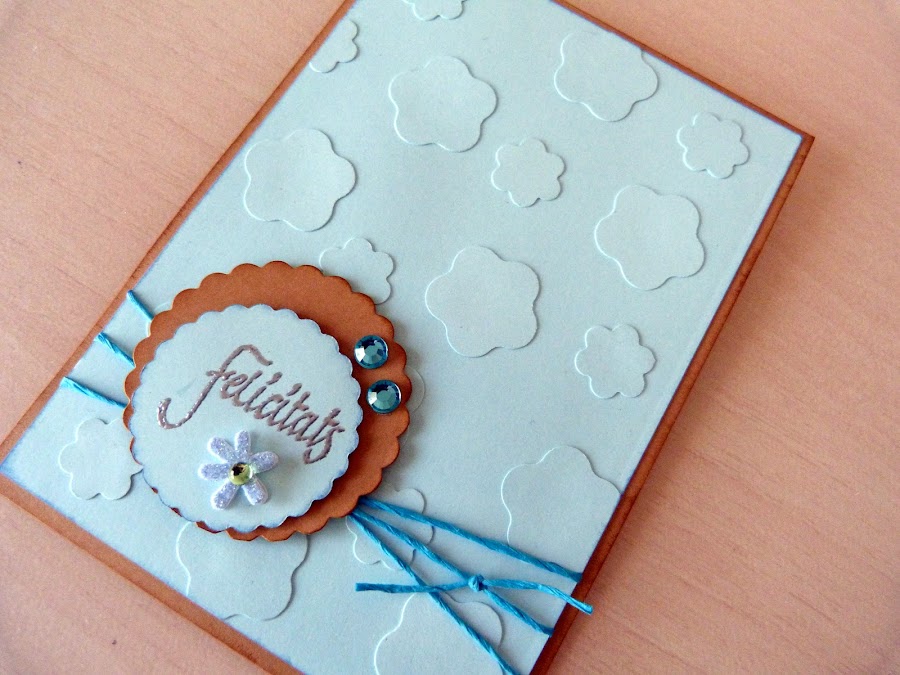 Yo opte por unos troqueles de dos tamaños de florecillas para realizar una tarjeta muy C&S pero es que me daba mucha pena tapar el fondo ya que resulta muy llamativo.