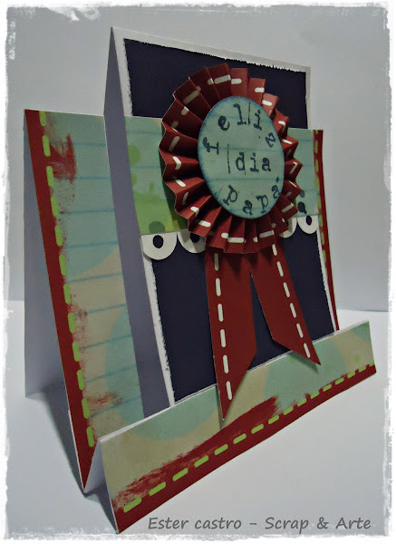 A la roseta le pegué el centro con la frase y corte unos listones de la lámina roja para colocarlas por debajo de la roseta formando así un Medallón.