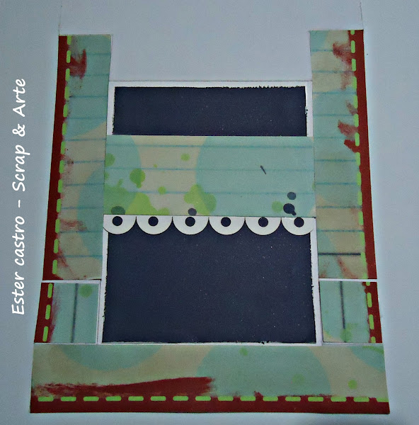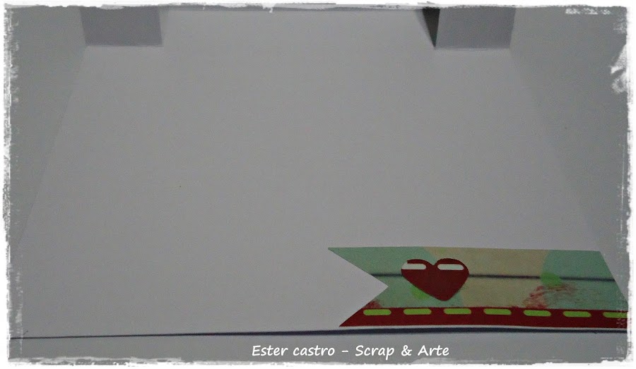 Al frente de la tarjeta le pegué todos los recortes de papeles de esta manera colocando también una puntilla de papel