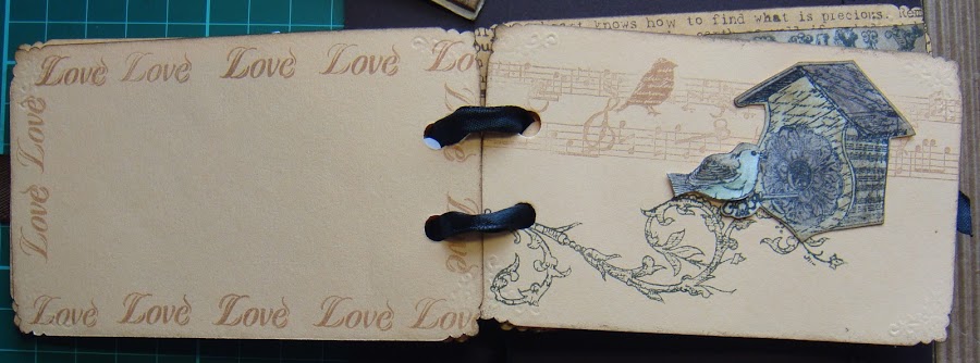 Del otro lado dentro del libro hay un mini álbum lleno de lugares para poner fotografías y journaling (anotaciones). En él hay muchas estampaciones que me llegaron por sorpresa de mi amiga Ángela (Samaac) a la que le estoy muy agradecida y me ha encantado su sorpresa! Muchas gracias!!!