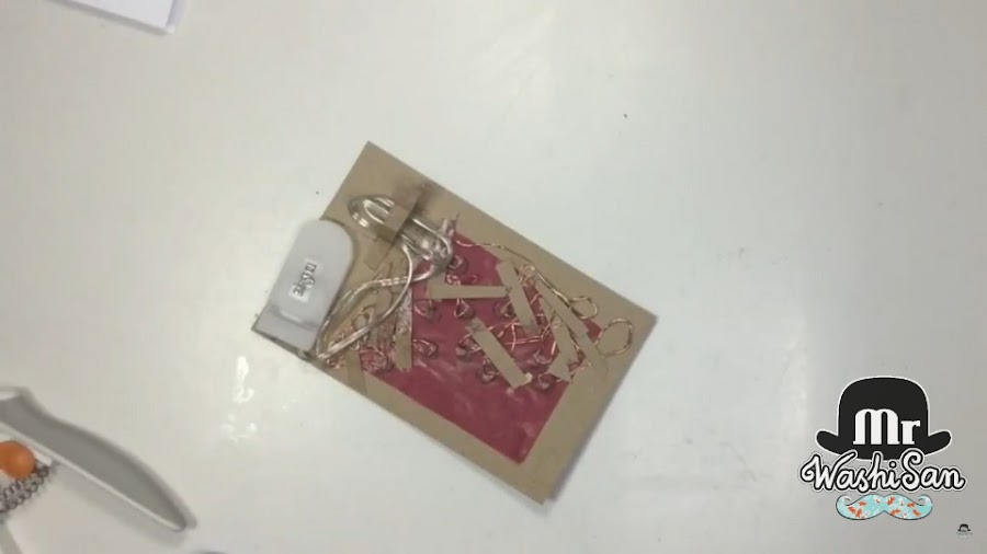 Ahora simplemente hace falta evitar que los dos extremos que hemos cortado toquen entre sí y hagan un cortocircuito, así que pondremos un poco de washitape en los alambres.