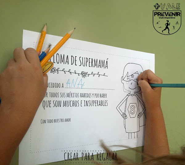 Lo primero fue que pintaran un diploma para la Súper Mamá y en la que escribieran el nombre de mami. Lo puedes descargar AQUÍ para que los peques le den su toque personal.