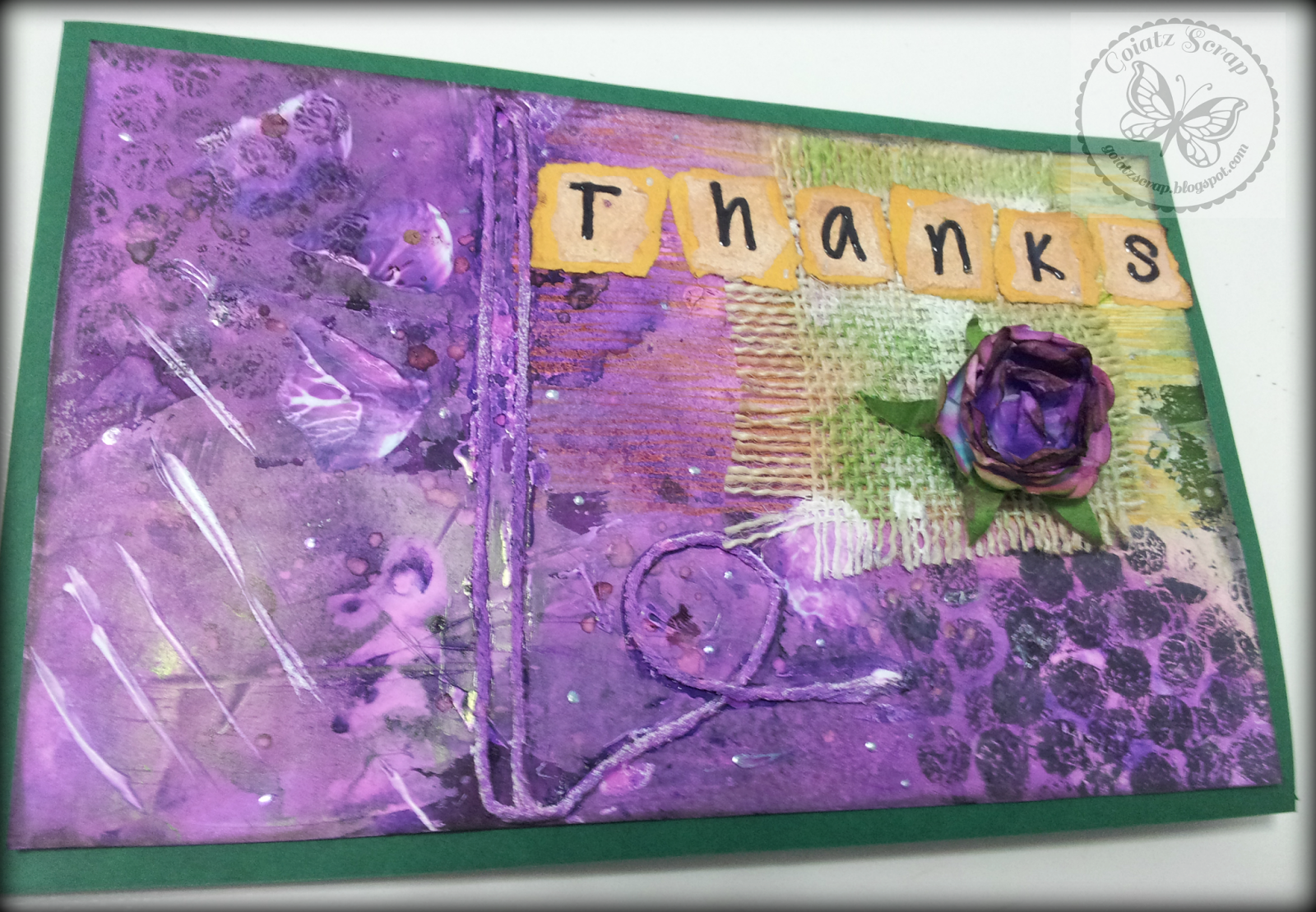 Después de varias horas de guarrear con tintas, gesso... y varios intentos fallidos (jeje), conseguí realizar una tarjeta bastante digna. (Eso creo yo. jaja)