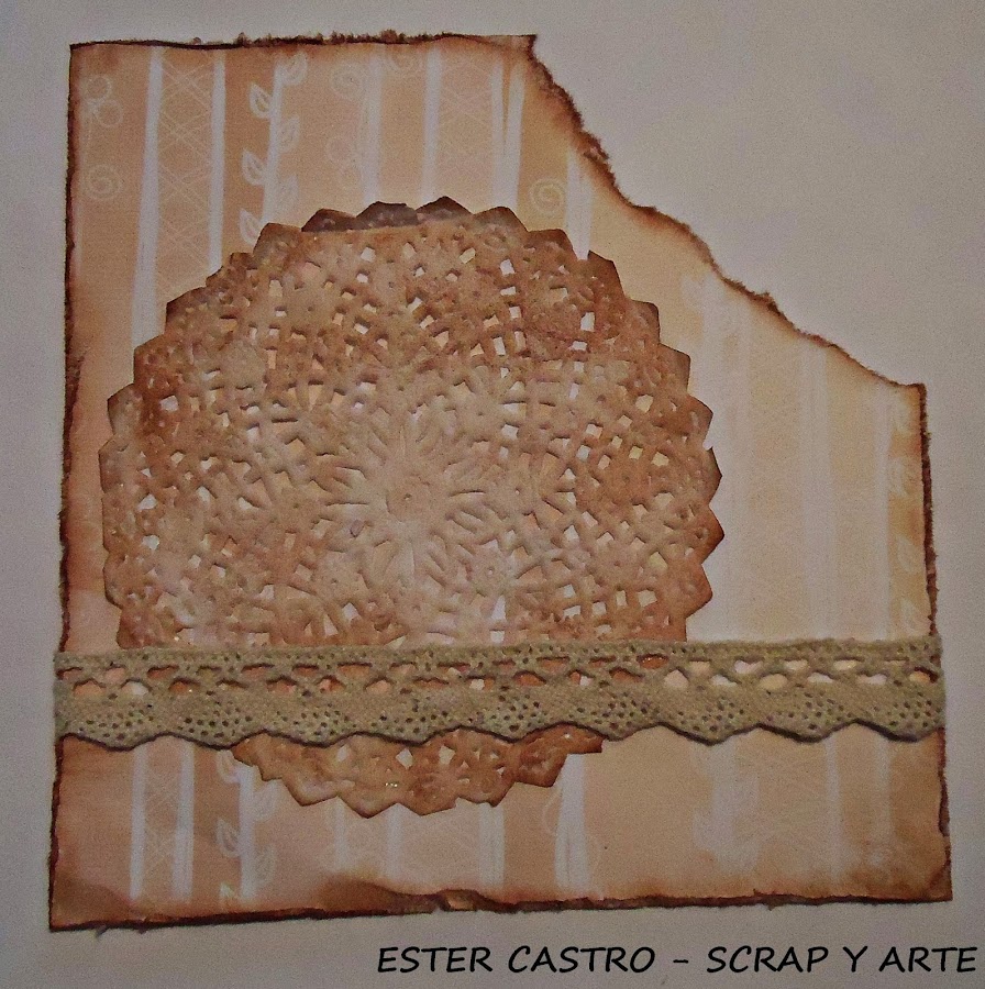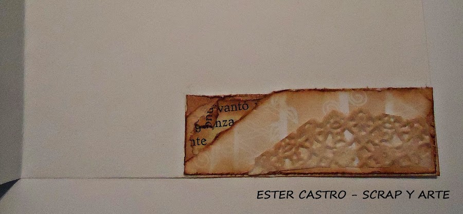 Sobre la mini lámina apliqué la blonda y la puntilla