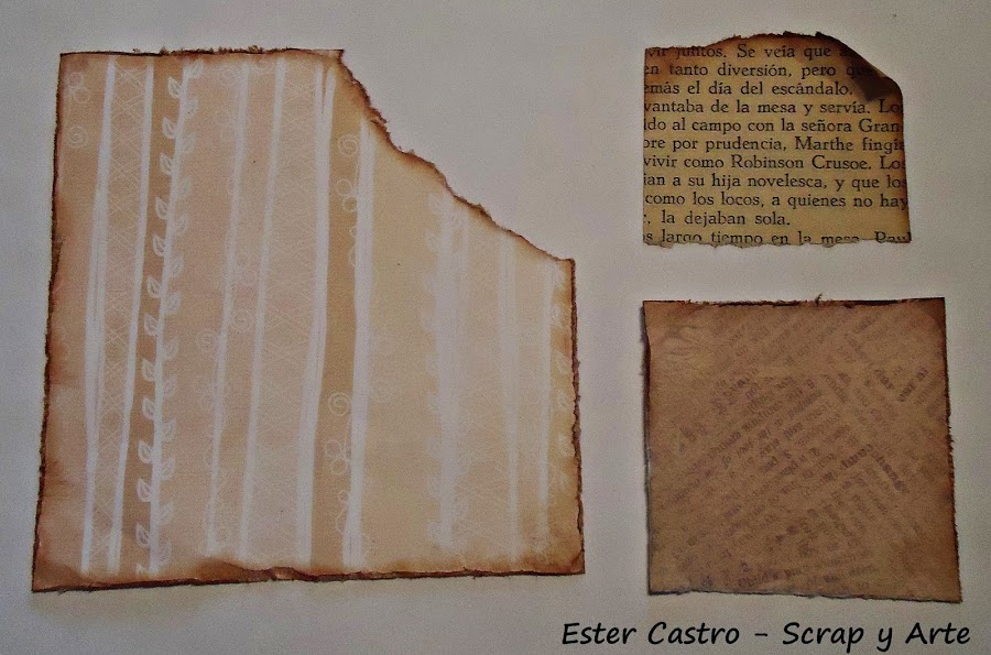 Prepare una mini lámina como diseño del frente de la tarjeta rasgando un ángulo, luego desgaste todos los bordes e entinte al igual que un recorte de lamina y en recorte de hoja de libro que luego desgaste entinte también