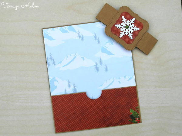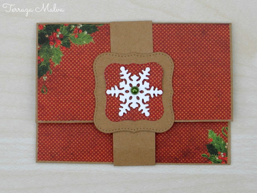 Los papeles son de temática invernal y como adorno he usado el troquelado de un copo de nieve en cartulina sobre goma eva.