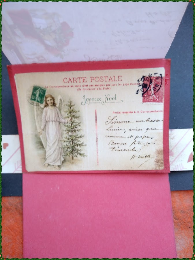 En la portada, como veis una bonita imagen a modo de sobre con la imagen de papa Nöel pegada sobre la cartulina con cinta de doble cara.