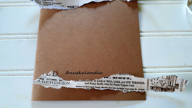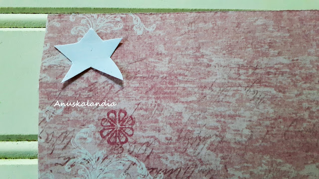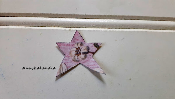 6.- Dibuja una estrella y marca en el papel de scrap. Recorta. Sombrea con tinta distress vintage photo. También la cartulina kraft. Pega la estrella.