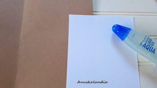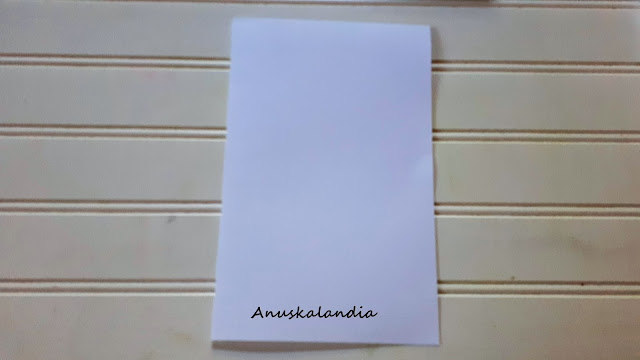3.- Dobla la cartulina blanca también a la mitad, y corta a 13 cm. de ancho y 17 cm. de alto. Siendo así, un poco más pequeña, para que se vea la cartulina kraft. Esto lo harás para el interior de la tarjeta.