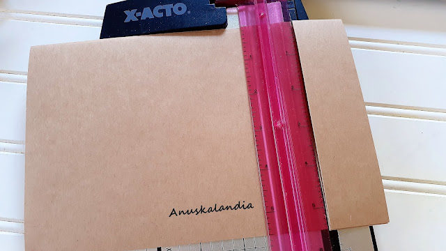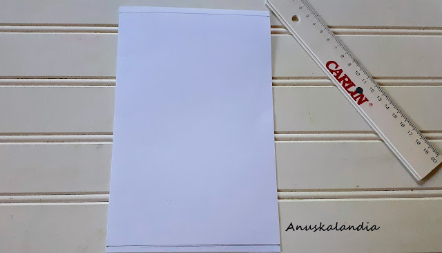 2.- Doblas la cartulina kraft a la mitad. En mi caso, marco a 18 cm. de alto y me quedan 14 cm. de ancho. Corta.