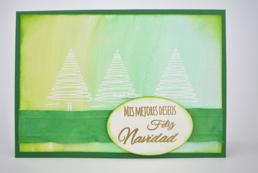 Los árboles son sellos de la colección "Dibujando la navidad" colección que he diseñado para esta temporada y embosados en blanco.