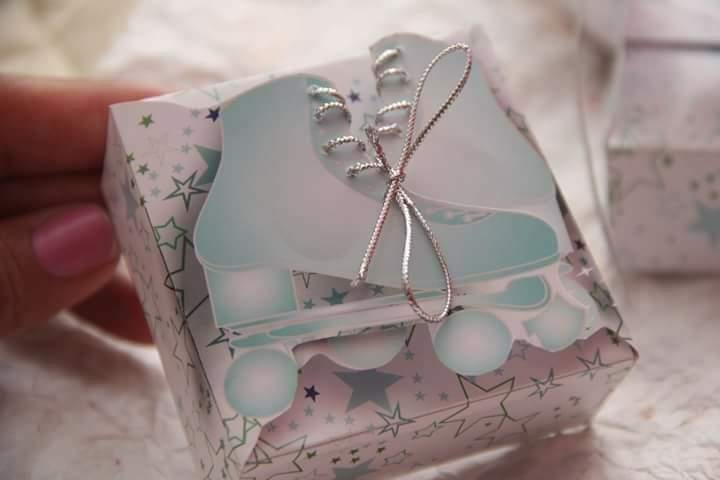 Primero realicé el patrón con un programa editor de diseño gráfico. Dibujé los patines. Para que sea mas colorido cree un estampado de estrellas verdes. Que van a estar decorando la caja de la tarjeta. Una vez realizado el diseño lo imprimís y lo recortas para poder armarlo.