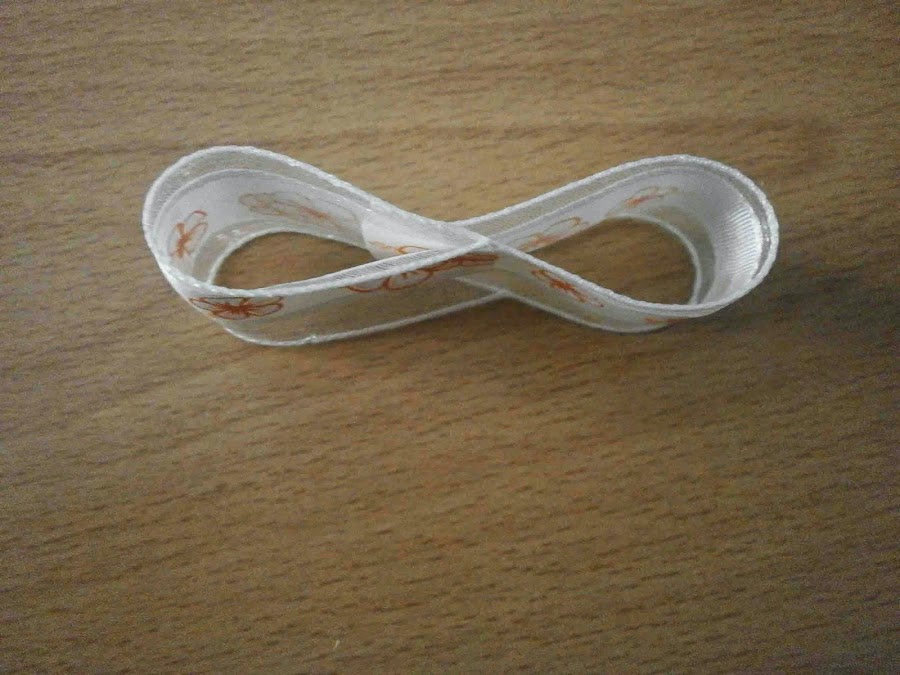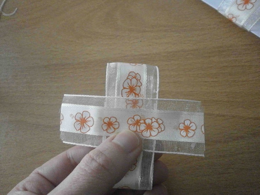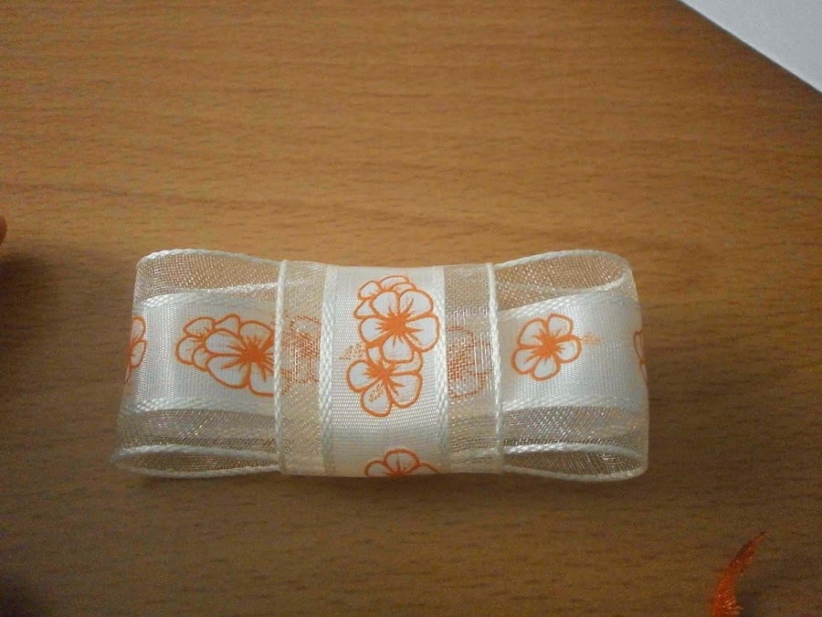 Con otro trozo de organza, doblé y pegué por el medio para hacer un lazo.