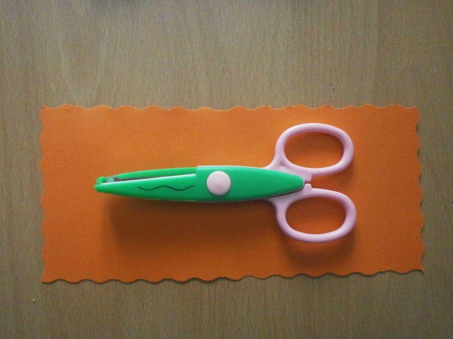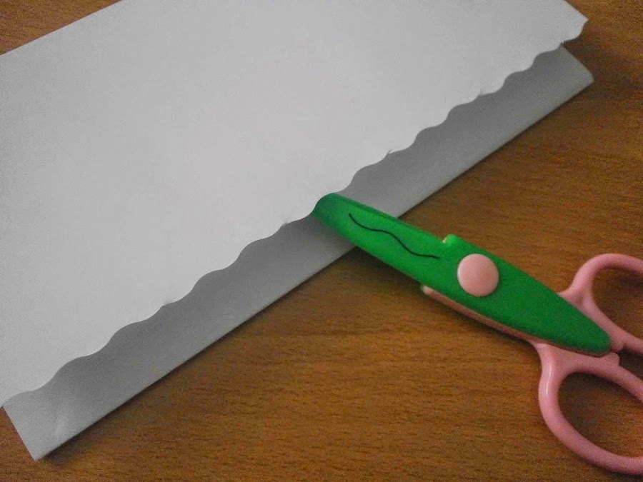 Con las tijeras de corte redondo recorté el borde de la cartulina.