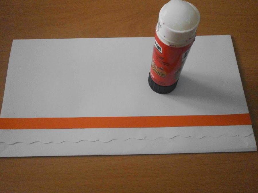 Recorté una tira de cartulina de color y la pegué con el pegamento de barra.
