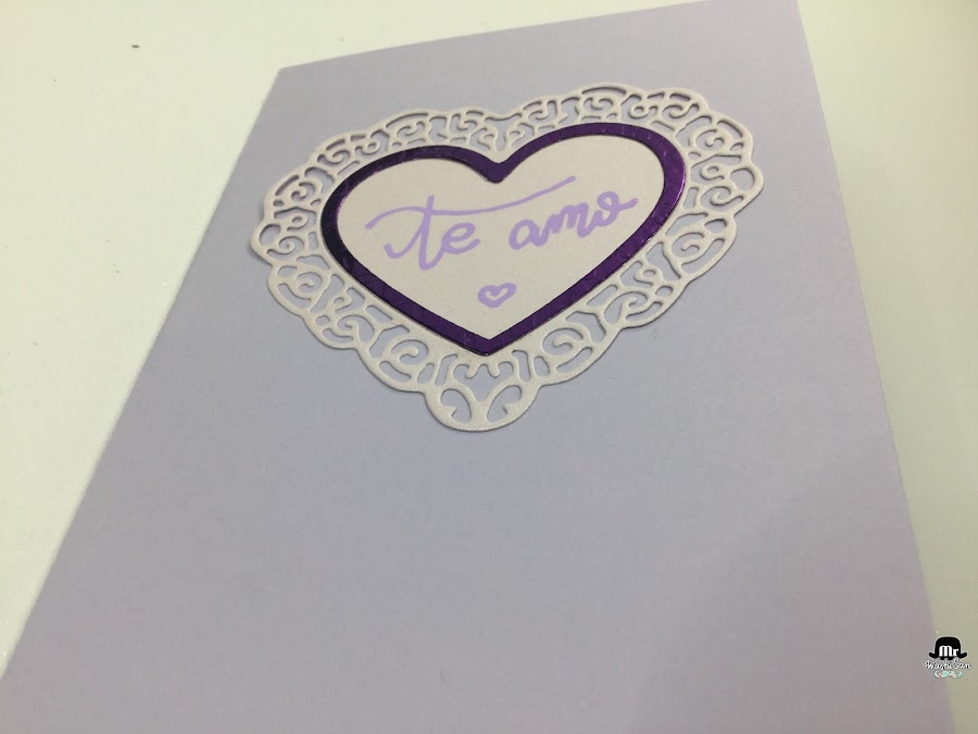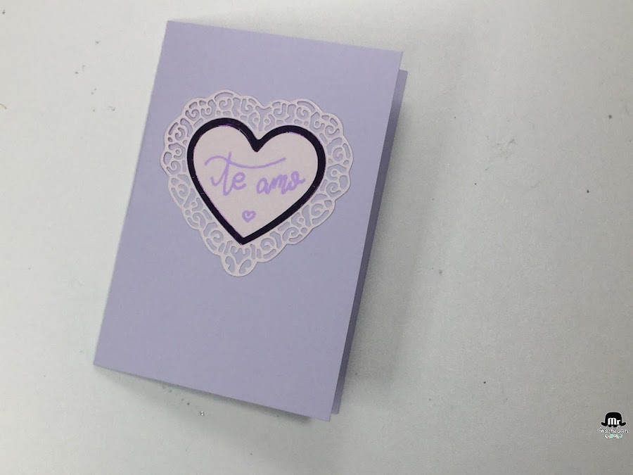 Pegamos el corazón grande con la filigrana alrededor de color rosa pálido. El perfil de color metalizado y solamente falta escribir te amo.