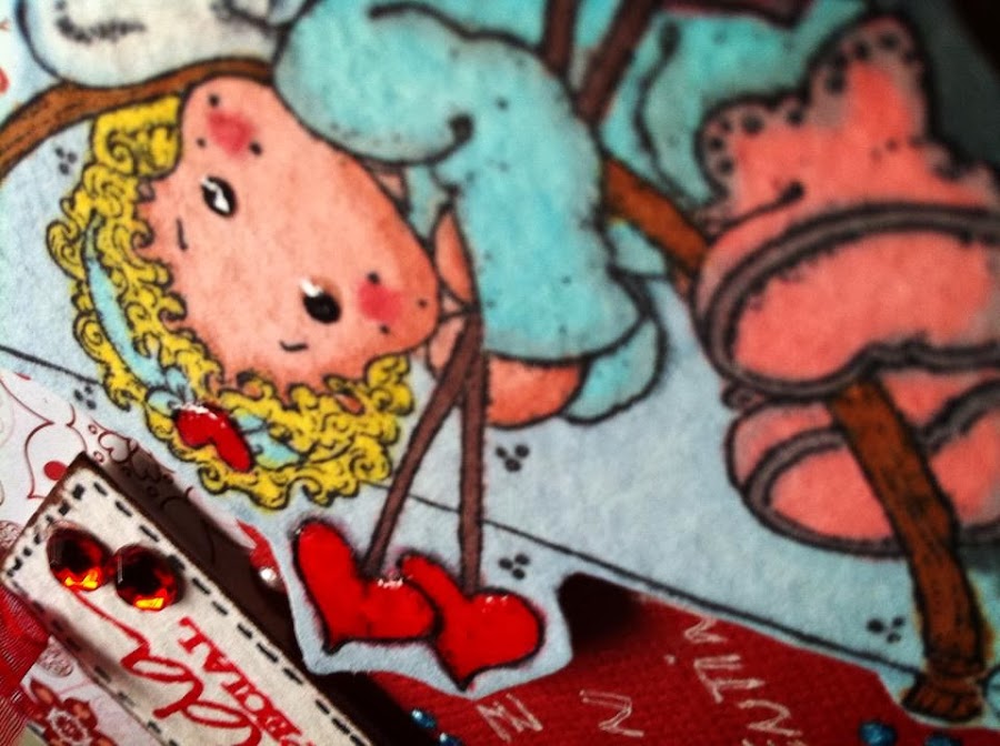 Buenas noches, Hago esta entrada ahora, porque mañana me voy pronto de fin de semana romántico y he estado liada haciendo maletas. Os enseño una tarjeta que le he echo a mi marido para San Valentín y aprovecho el reto que nos piden para este mes Locas por el scrap de que tenga color rojo y glitter. Un besito y buen fin de semana, y disfrutar de vuestras parejas.
