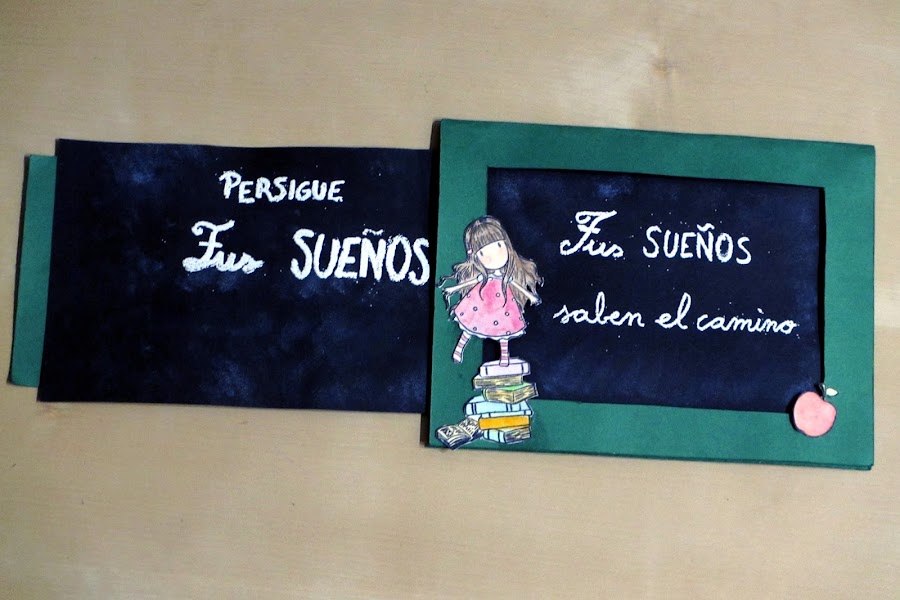 Así que me decidí por hacer una pizarra, lo sé que poco original, pero quise que la pizarra se moviera para poder escribir diferentes mensajes. Al final, con embosing escribí una frase que estuviera dividida en dos y la solución se encontrara en la segunda pizarra.