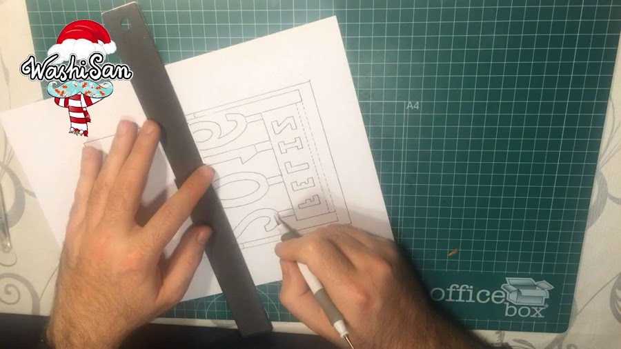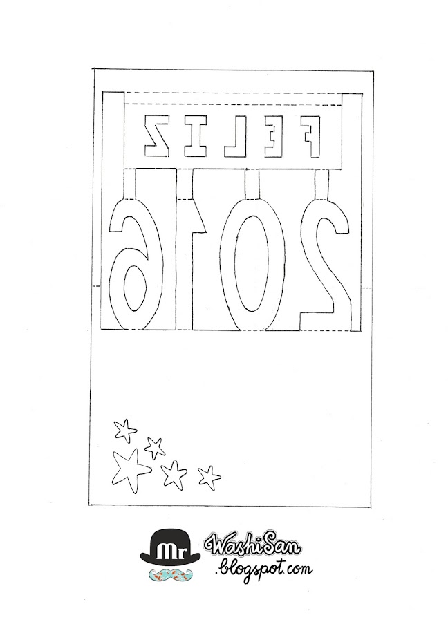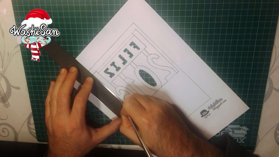 Solamente tenéis que descargaros la imagen con el esquema a seguir en un folio de papel DIN A4. Saldrá impreso con las letras escritas al revés. Es correcto ya que de esta manera estamos recortando por la parte posterior, cuando montemos la tarjeta si queda alguna línea quedará oculta en la parte trasera.