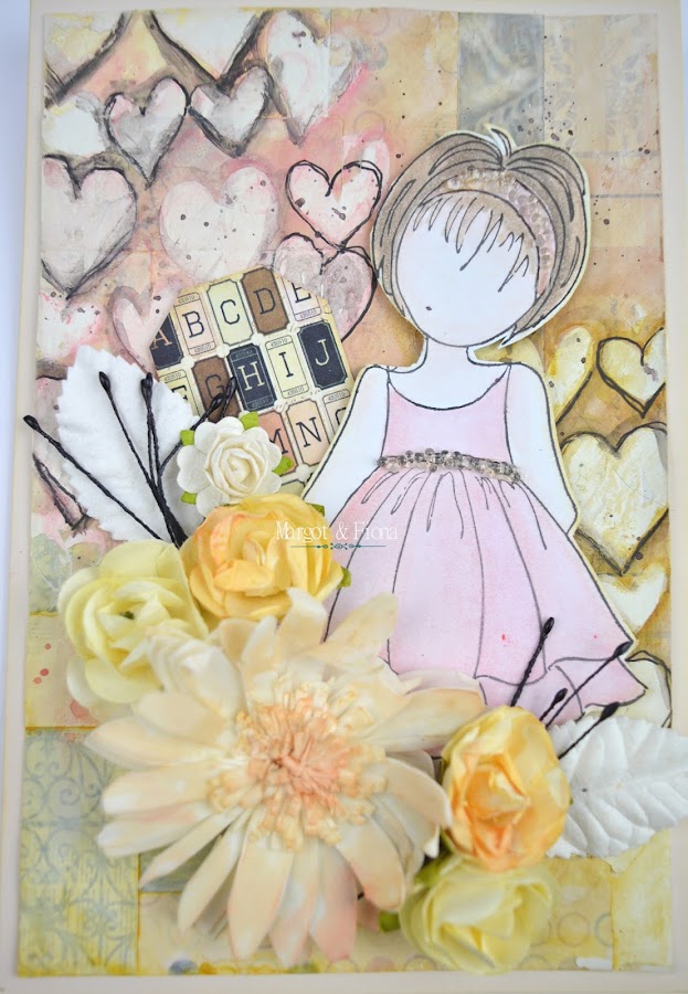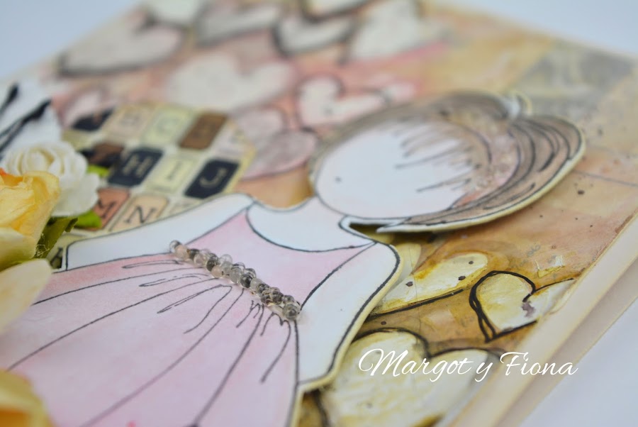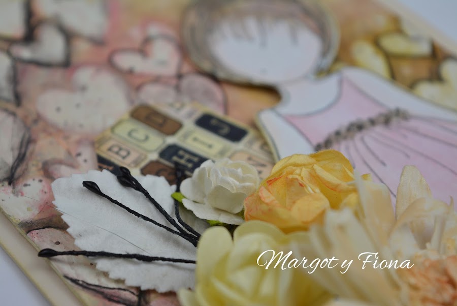La muñequita es un sello de de Prima M. también y coloreado con Inktense pencil de Derwent.