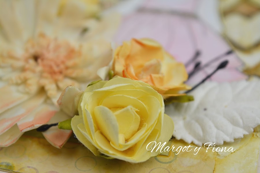 Para los recortes de papel que componen el fondo de la tarjeta, he utilizado la colección Rondelle de Prima M.