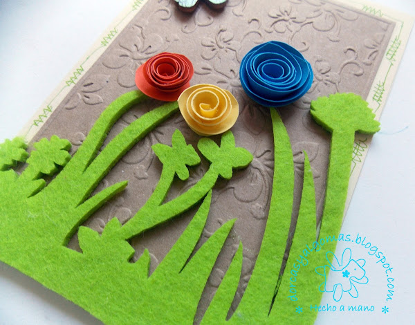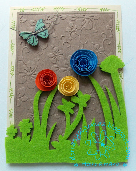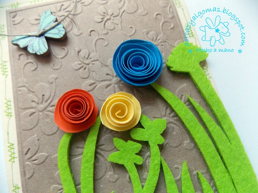 Hoy os muestro una tarjeta de felicitación que he realizado para el grupo Sweet Card Club. Hay que realizar una tarjeta que contenga como mínimo 3 flores. Y ésta es mi interpretación: