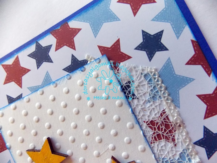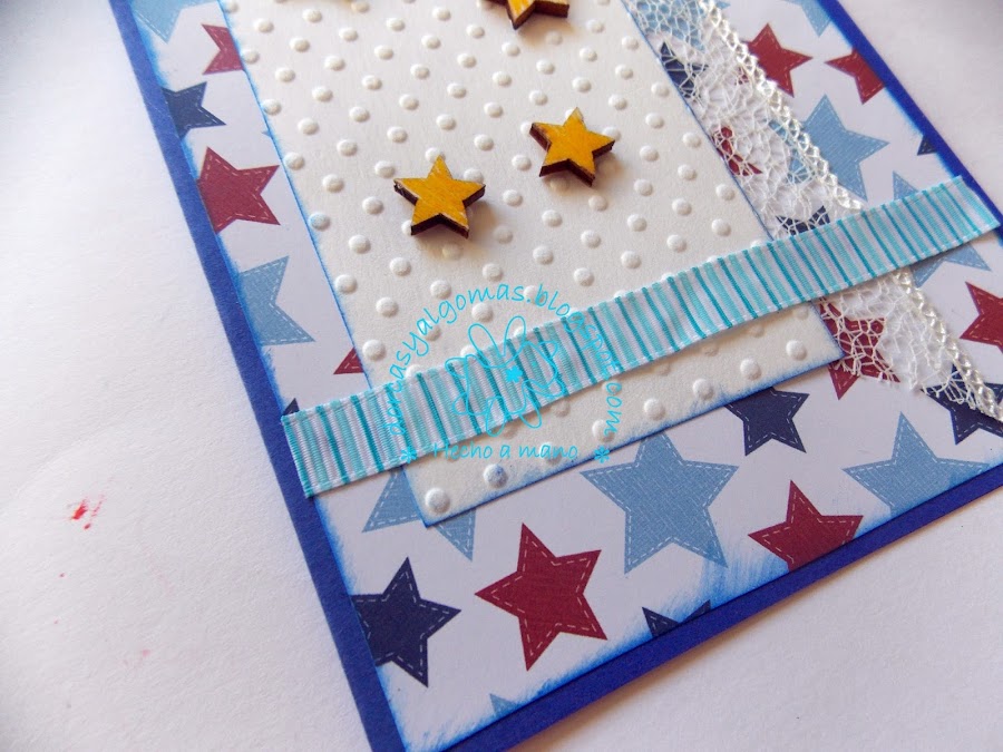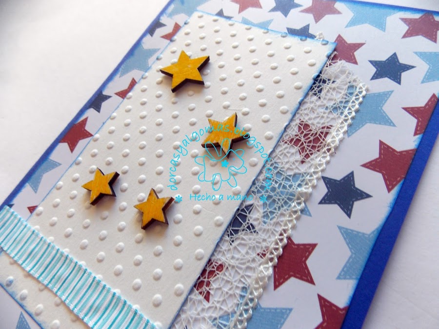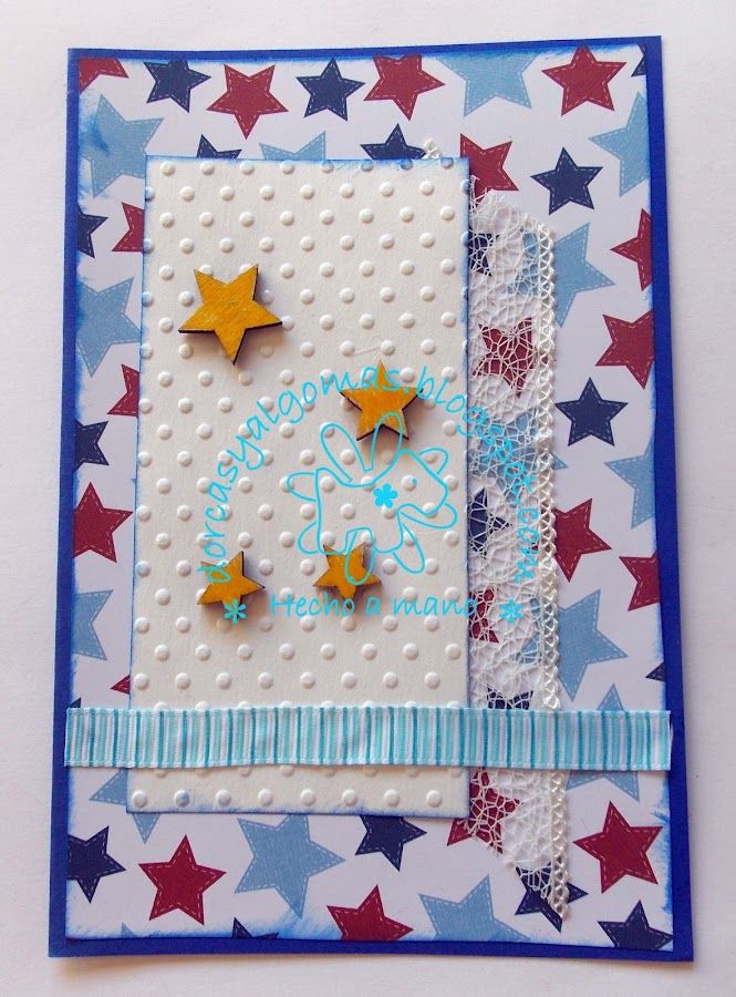 Os muestro una nueva tarjeta de felicitación para el grupo Scrabooking Castilla y León dentro de la actividad "Scrapea mes a mes", tiene que llevar estrellas.
