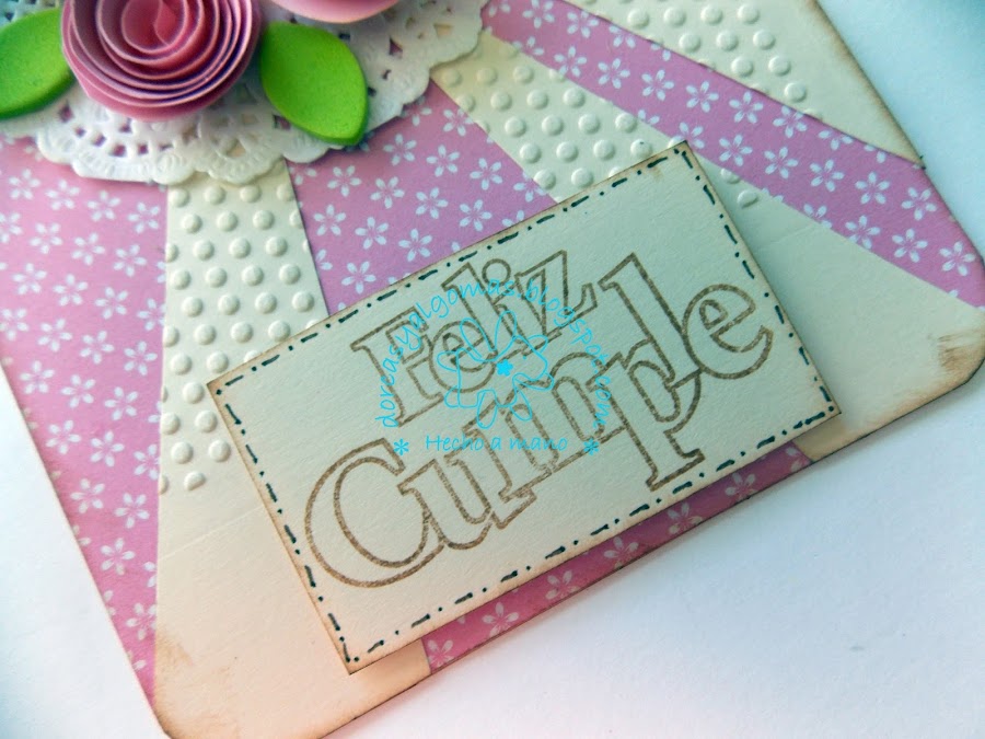 Os muestro una nueva tarjeta de felicitación para el grupo Scrabooking Castilla y León dentro de la actividad "Scrapea mes a mes", tiene que llevar flores.