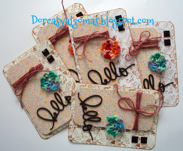 Hoy os muestro unas tarjetas que he realizado utilizando el cartoncillo de una caja de colonia: el de florecillas en la foto. La verdad es que un vecino la llevaba en la mano para tirarla a la basura y se la pedí porque me encantó el dibujo.