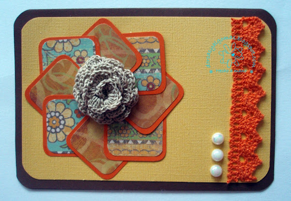 Hoy una tarjeta de model Pinwell en tonos naranjas y amarillos.