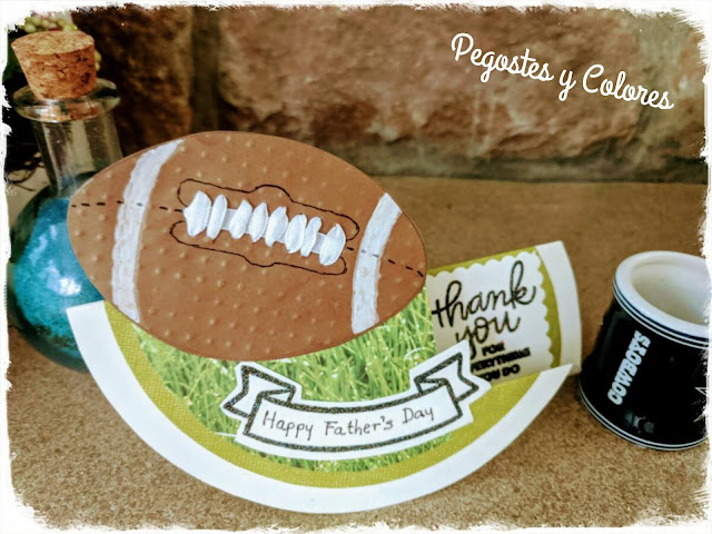 Me pareció un tema perfecto para Junio y lo que es mas, desde el inicio supe que iba a hacer una tarjeta de futbol americano, aprovechando que se celebra el día del Padre y que me faltaba la tarjeta para mi esposo.Pero luego me bloquee un poco al tratar de decidir la técnica, porque no quería repetir las mismas cosas que he hecho, quería hacer algo nuevo. Cuando en eso Jen de Little Kimono nos propone otro reto en el que también participo, hacer una Rocker Card. Estas tarjetas se llaman "Rocker" porque se pueden mecer.