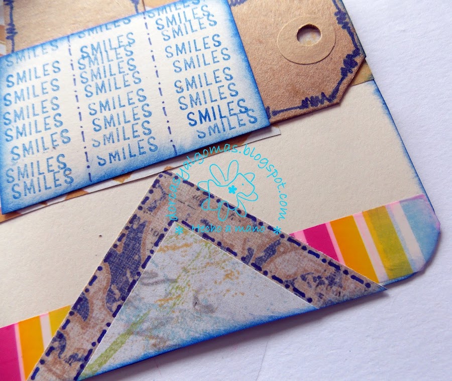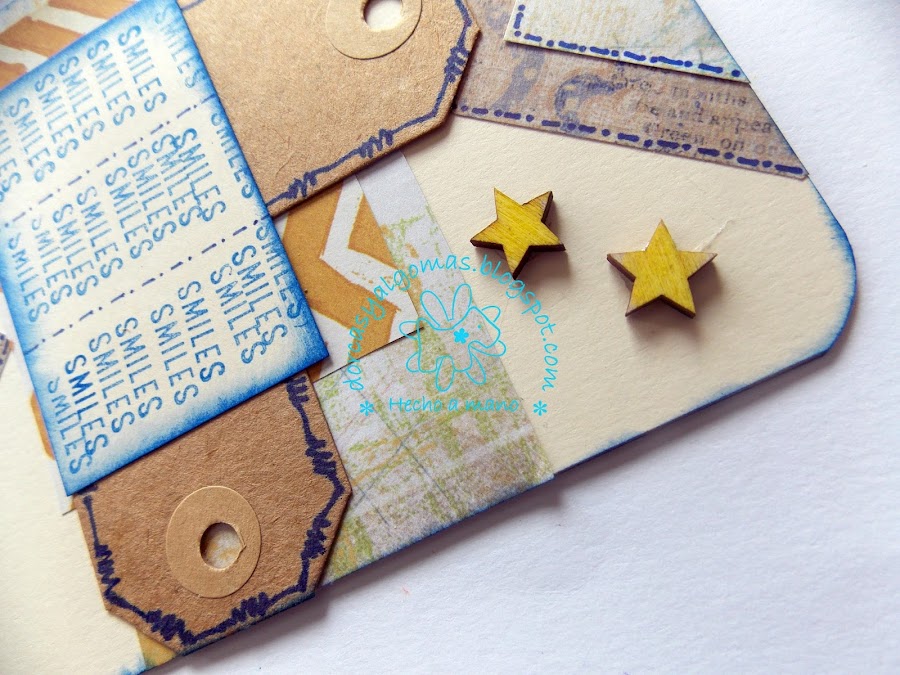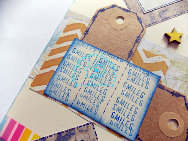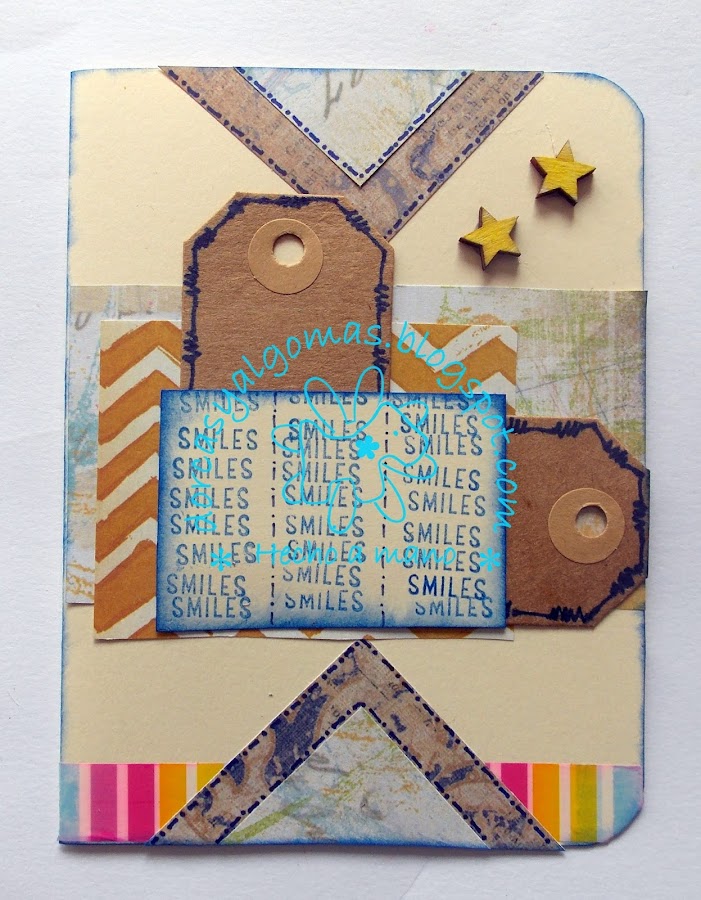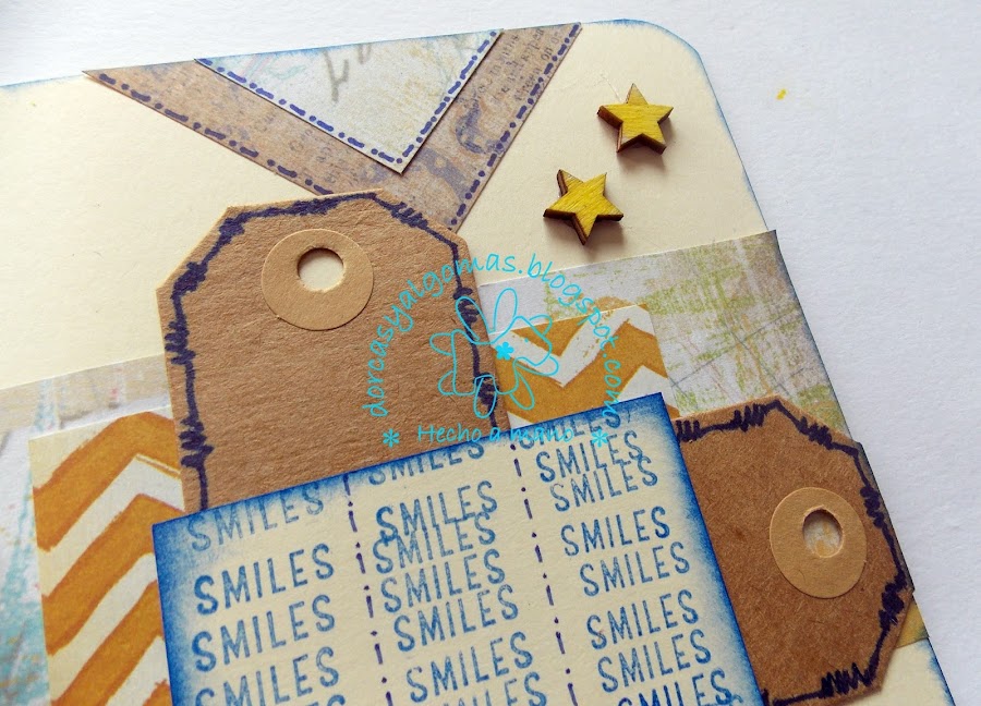 Hoy os muestro una tarjeta de felicitación titulada "Smiles". Está tarjeta participa en el proyecto conjunto del grupo Scrapbooking Castilla y León, en el cual hay que hacer un proyecto de scrap a partir de la plantilla dada.