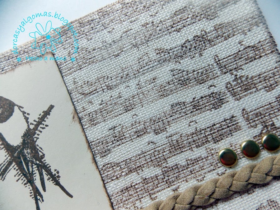 Hoy en el grupo de Facebook, Scrapbooking Castilla y León, toca la actividad "Scrapea mes a mes". Para esta ocasión hay que realizar un trabajo de scrap que lleve tela. Yo he realizado una tarjeta de felicitación a la cual le he pegado un trozo de lienzo en el soporte y luego he estampado un sello de partitura musical.