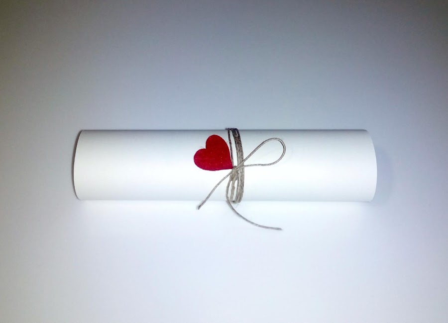 4. Una vez seco, enrolla la cartulina y decórala. Yo utilicé cuerda y un corazón de fieltro.