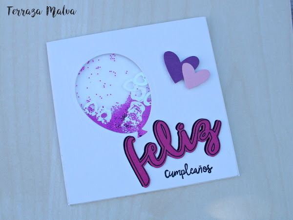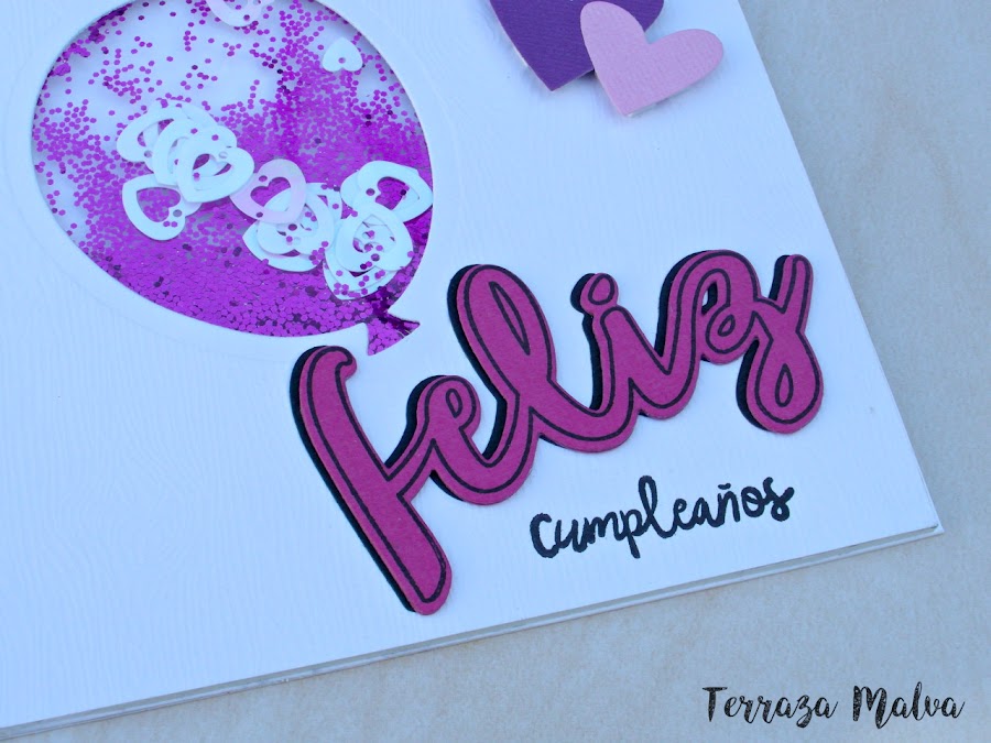 En el interior del globo he puesto unas lentejuelas con forma de corazón y purpurina rosa. También he colocado un par de corazones troquelados como adorno.