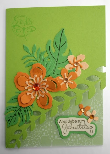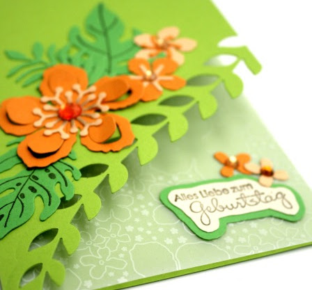 Cuando me llegó el paquete con mi pedido de mis sellos y formas de corte "Botanical Blooms" de Stampinup lo quise probar enseguida! me encanta que tenga ese aire tropical tan especial...