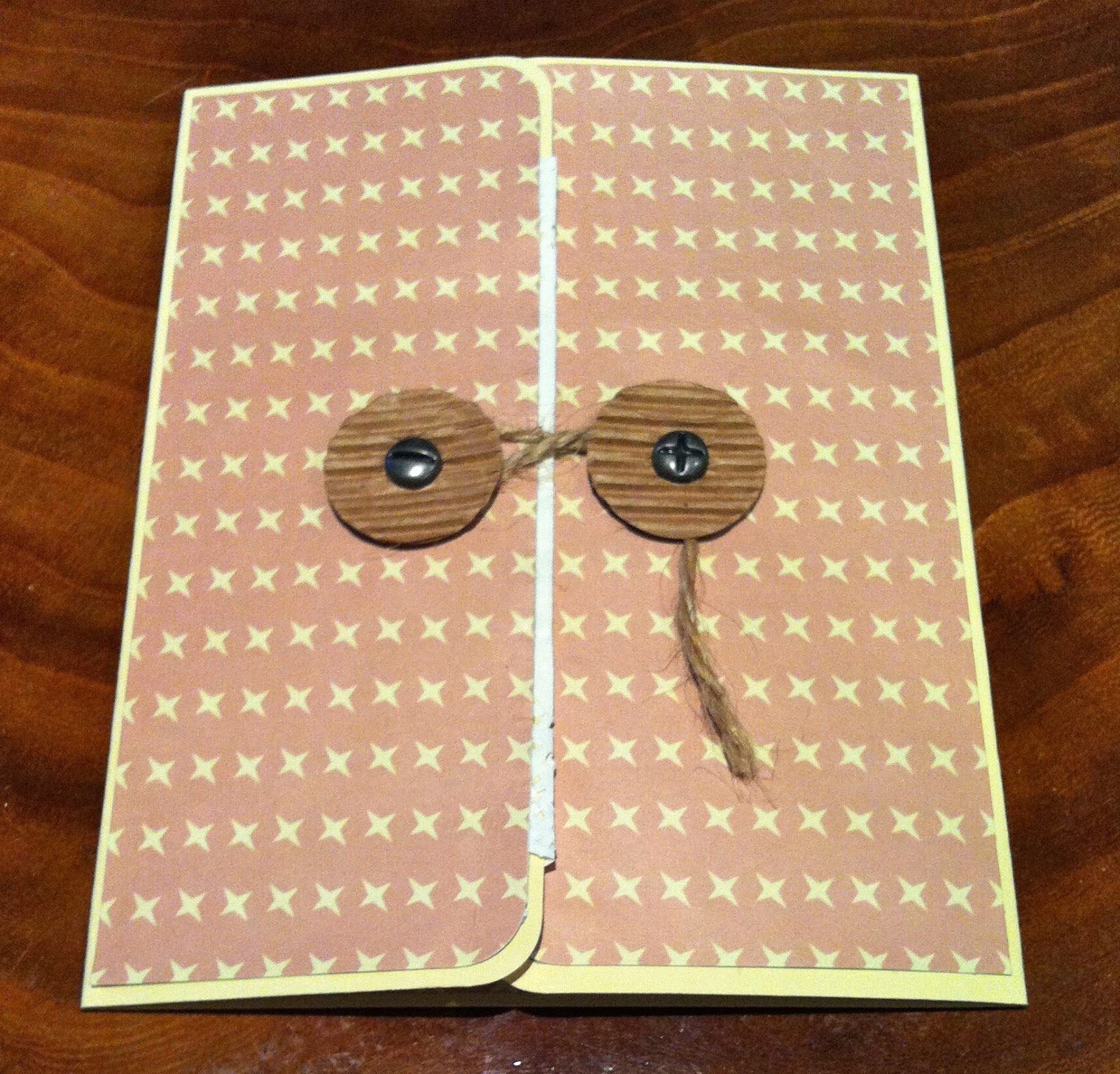 Así que, después de darle muchas vueltas, esto es lo que resultó: una tarjeta con un toque "vintage" y, a la vez, moderno. Estilos contrarios que no tienen por qué desentonar. Y como los polos opuestos se atraen, dos brads: uno positivo y otro negativo.