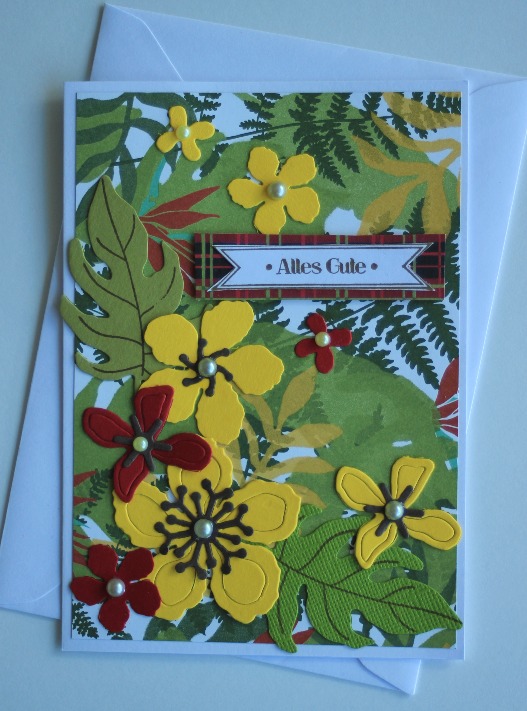 Así que cuando ví esta colección de Stampin up, no me lo pensé dos veces, tenía que tenerla, salió en el 2017 y todavía es una de mis preferidas, papel, sellos y formas de corte (Botanical blooms stamp set, Botanical builder dies, Botanical paper)